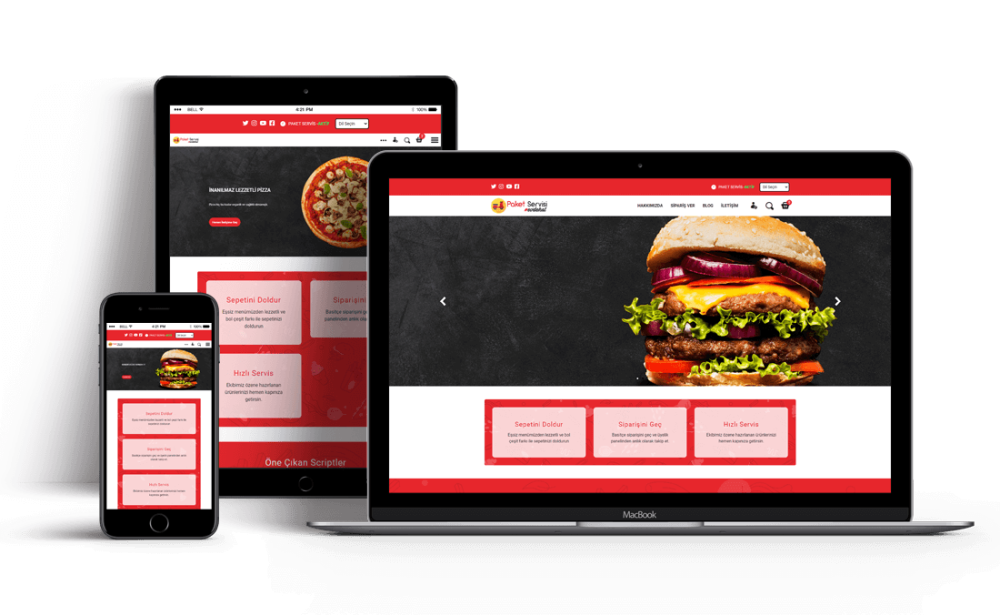 Paket Servis Scirptinde Ürünlerde ek özellik tanımlama, porsiyon seçimi ve istenmeyen malzemeler alanını sınırsız şekilde oluşturabilirsiniz.